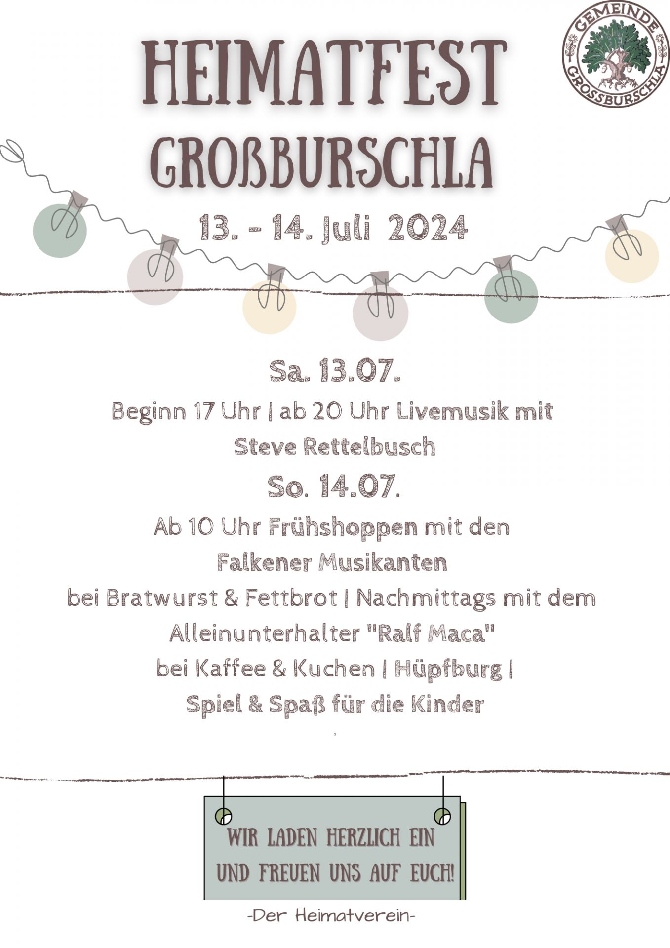 Der Heimatverein Großburschla lädt Alt und Jung herzlich ein zum traditionellen Heimatfest.