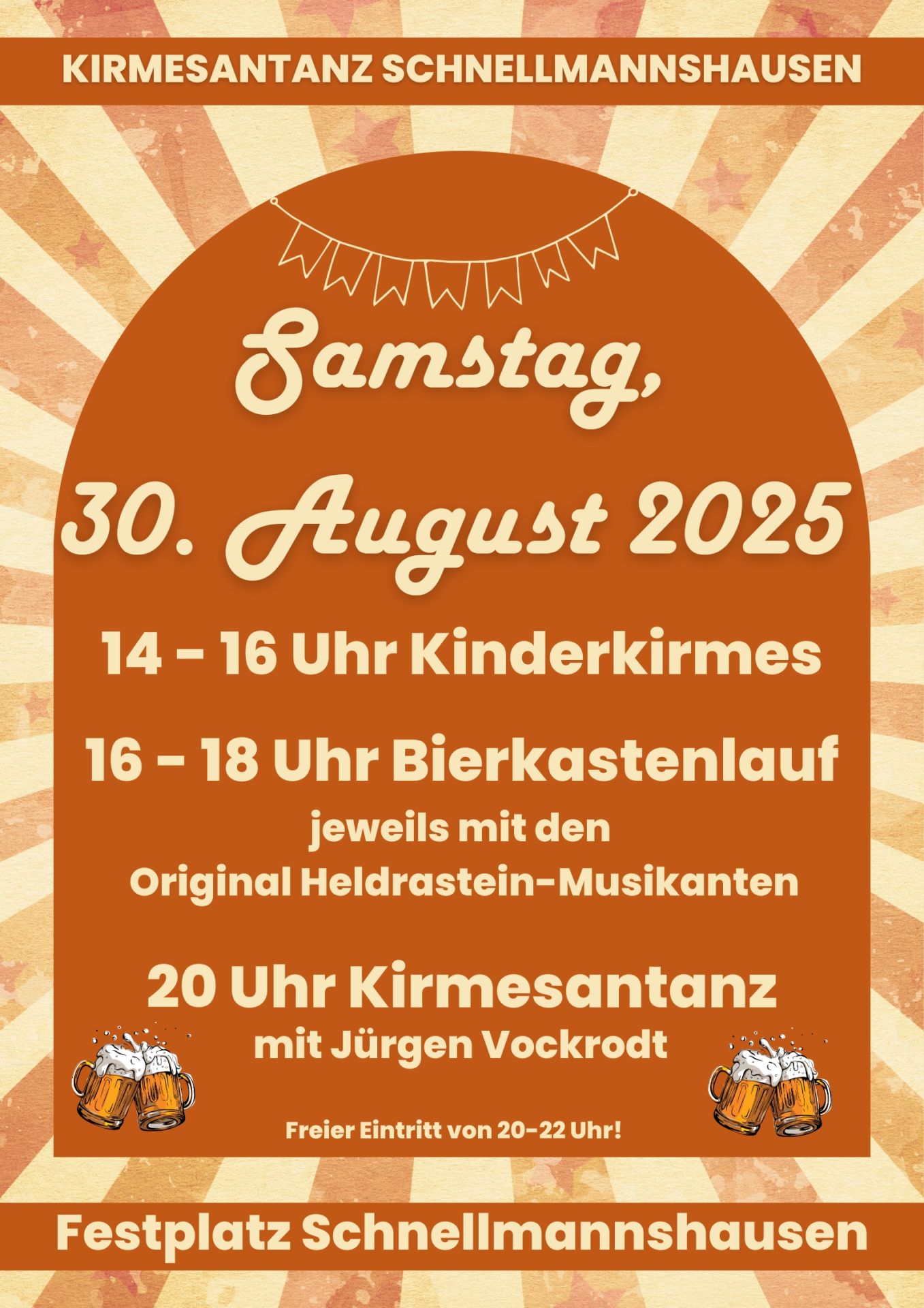 Der Kirmes Verein Schnellmannshausen lädt am 30. August 2025 zum Kirmesantanz ein.